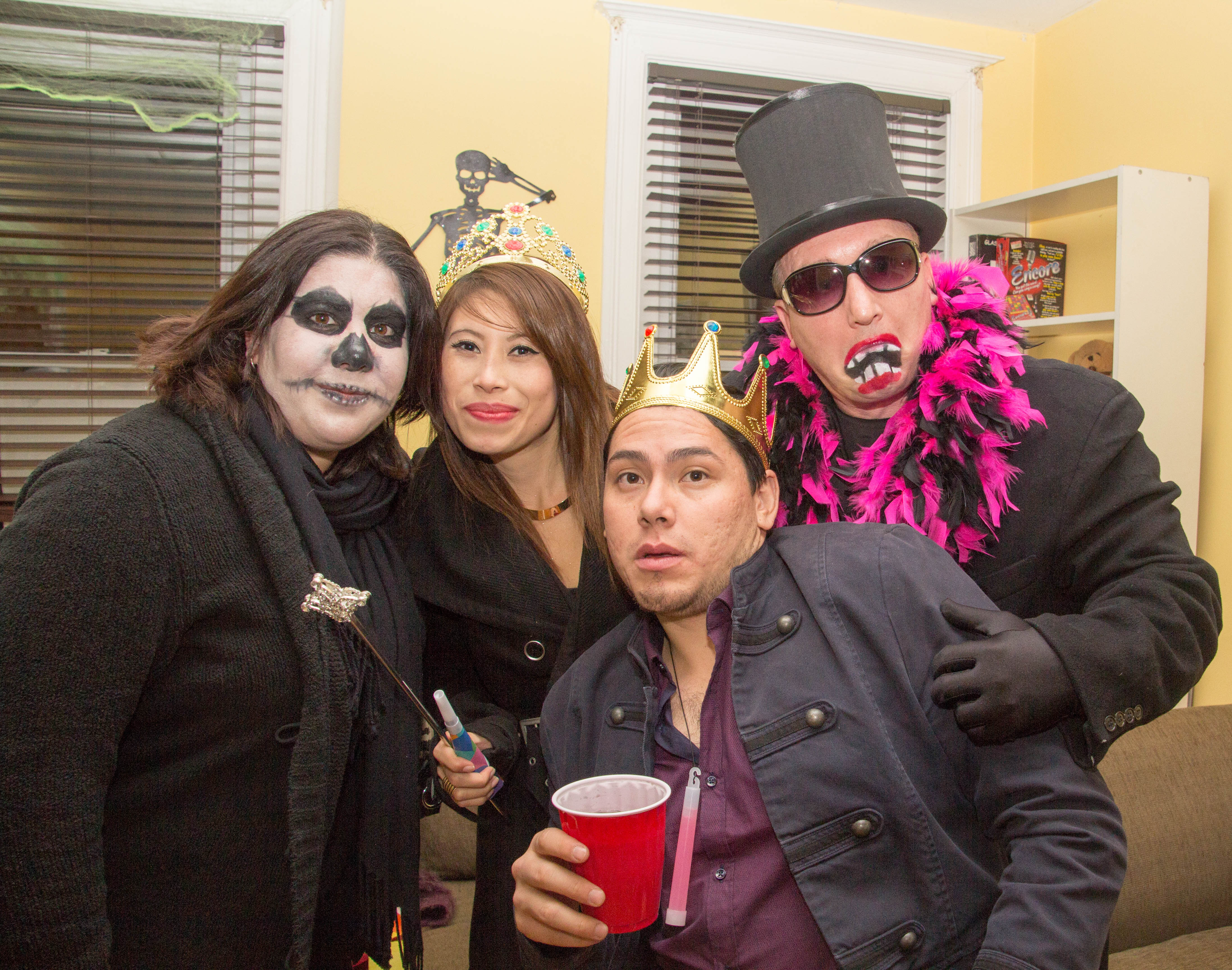 There were over 300 pictures taken with my camera alone! We actually had a blast with lots of candid shots and hilarious moments (one person continuously forgot to wear her mask, whom I shall not name!). After our party we all went to my cousin’s Halloween party, which was themed after the movie The Purge. Her’s was a costume party and it had great decor’ and the various costumes were really thought out and exciting to see. Below are a few pictures of her and a few guests.